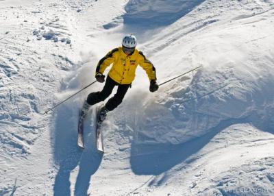 Photography credits: Ski photo – Peter Lamont; headshot – Michele Potter.