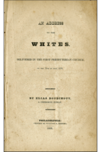 An address to the whites was actually a speech given by Elias Boudinot in Philadelphia on May 26, 1826.
